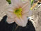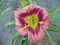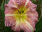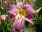 Large pinkish flower with a yellow throat. 30" tall, mid-season bloom.