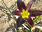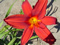 Red petals with yellow star shaped throat. 32" tall, late-season bloom..