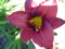 Redish velvet bloom with small yellow throat. 28" tall, mid-season bloom..